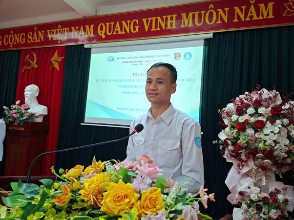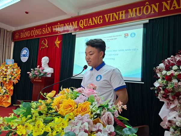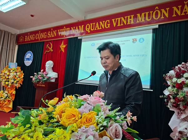ThS. Nguyễn Hữu Thắng - Phó Hiệu trưởng Nhà trường ghi nhận, biểu dương những kết quả nổi bật của công tác Hội và phong trào sinh viên; đồng thời bày tỏ kỳ vọng tuổi trẻ nhà trường tiếp tục phát huy truyền thống, nỗ lực học tập, rèn luyện, đóng góp tích cực vào sự phát triển bền vững của Trường Cao đẳng Công nghiệp Thanh Hóa trong giai đoạn mới.