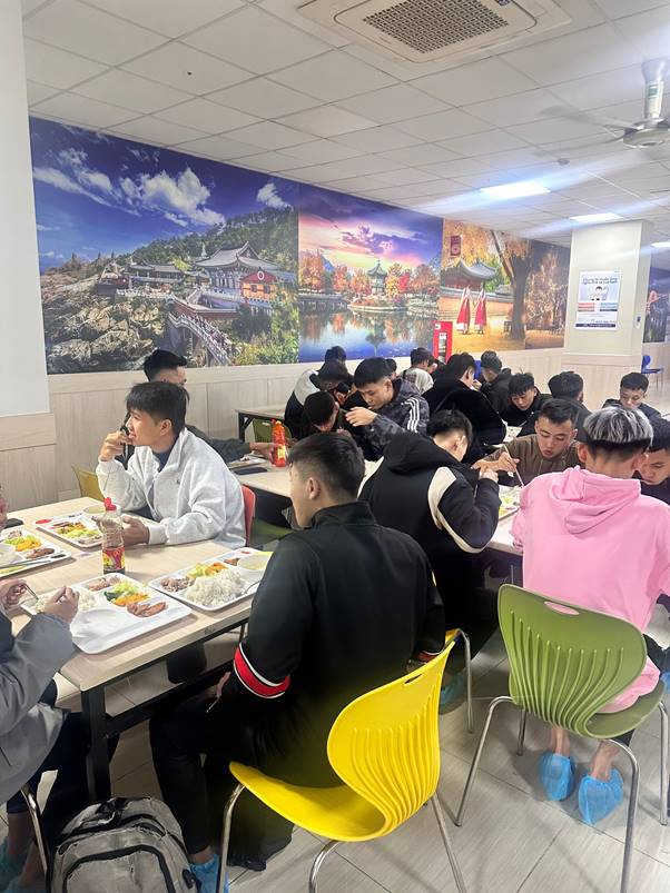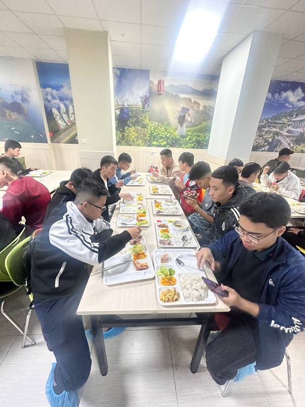 Hình ảnh những bữa ăn của sinh viên tại doanh nghiệp thực tập.