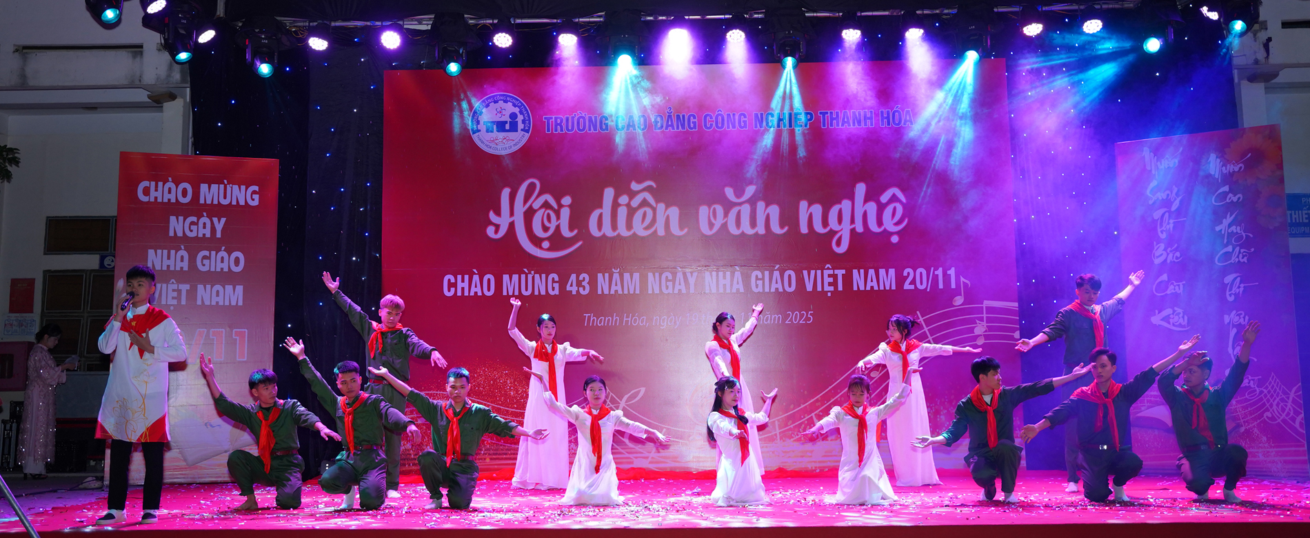 Tối 19/11/2025, Trường Cao đẳng Công nghiệp Thanh Hóa tưng bừng tổ chức Hội diễn văn nghệ chào mừng 43 năm Ngày Nhà giáo Việt Nam. Đây là hoạt động ý nghĩa nằm trong chuỗi hoạt động văn hóa – văn nghệ, thể dục thể góp phần tạo môi trường giáo dục năng động, giàu cảm xúc và đậm bản sắc truyền thống “tôn sư trọng đạo”.