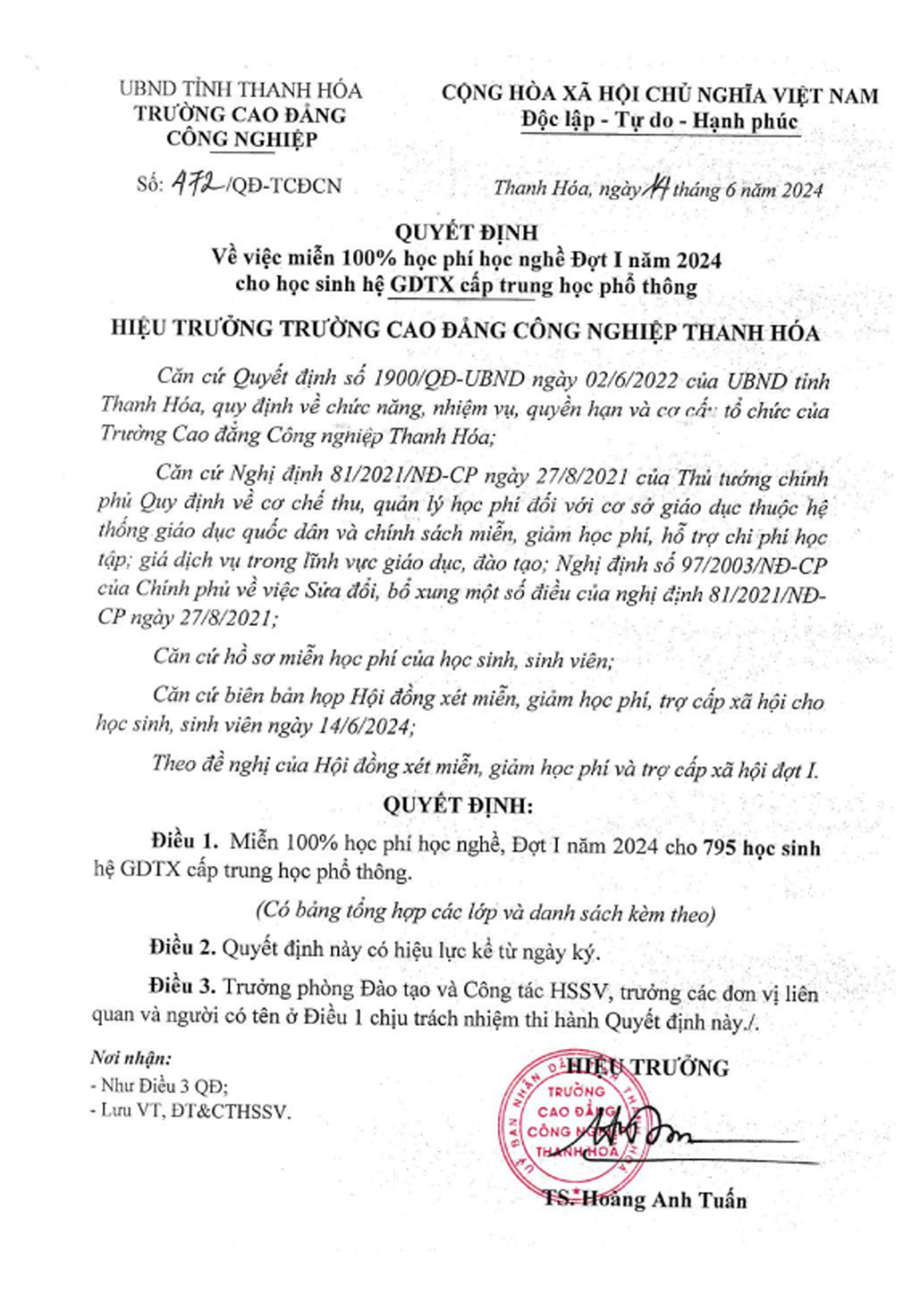 Văn bản theo chủ đề: Chế độ chính sách HSSV