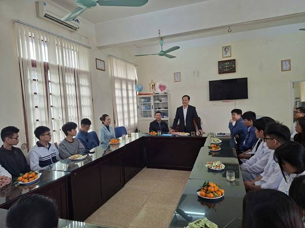 TS. Hoàng Anh Tuấn – Hiệu trưởng Nhà trường trao đổi với đoàn học sinh dự thi chọn học sinh giỏi cấp tỉnh năm học 2025-2026