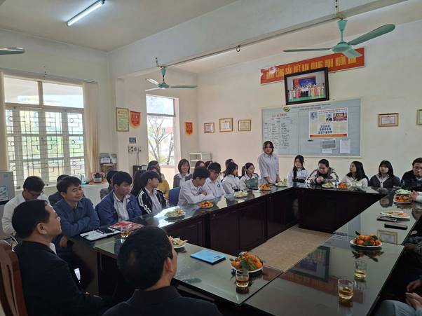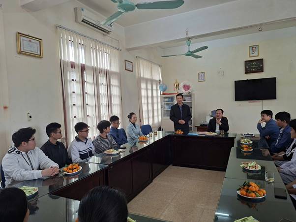 ThS. Lê Anh Minh – Trưởng khoa Khoa học Cơ bản trao đổi với đoàn học sinh dự thi chọn học sinh giỏi cấp tỉnh năm học 2025-2026