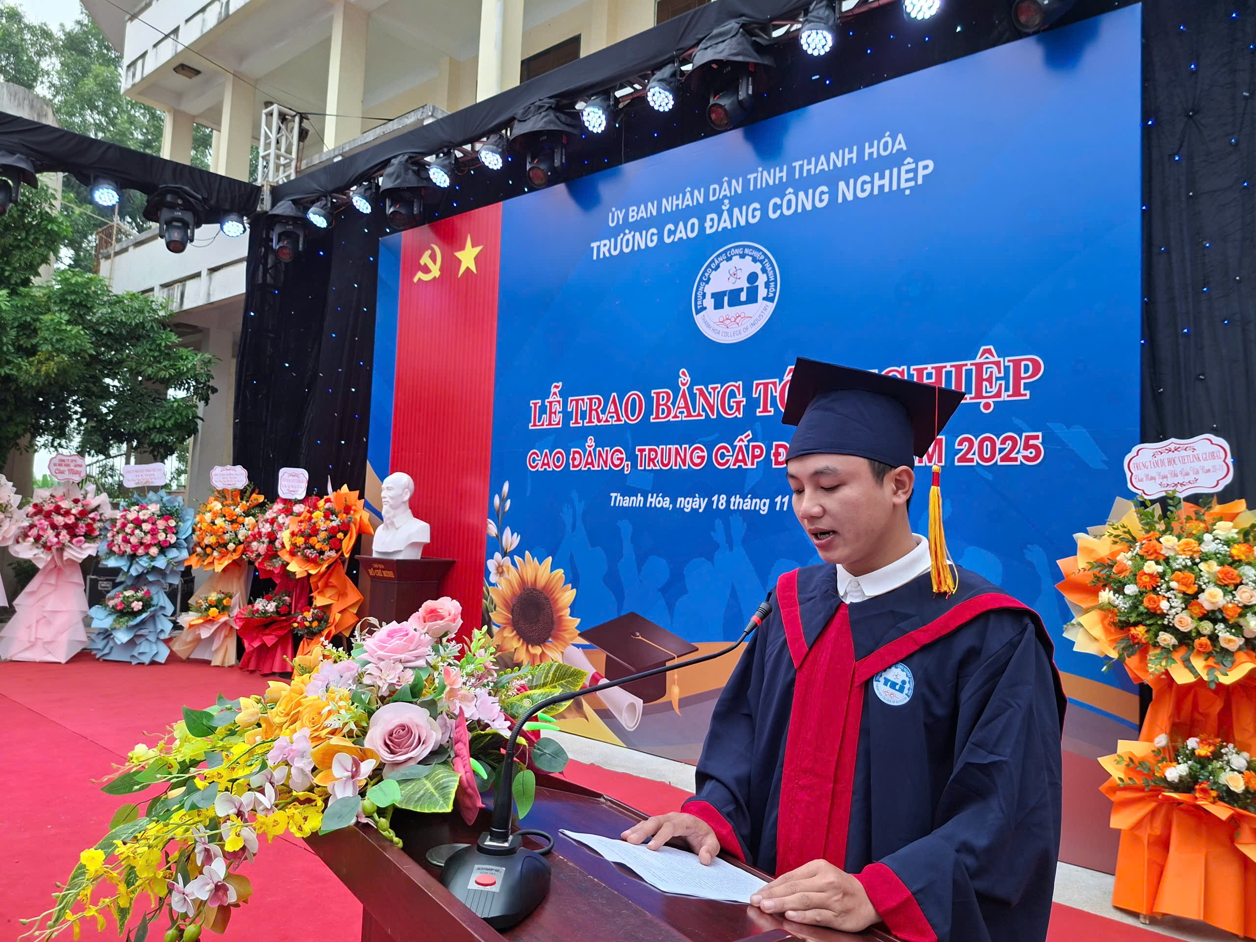 SV Lê Minh Đạt – lớp C18 Tự động hóa phát biểu tại lễ nhận bằng tốt nghiệp